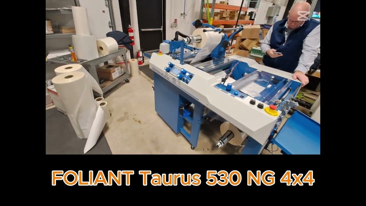 The FOLIANT Taurus 530 NG 4x4 laminator maximum sheet size is 53 x 75 cm, extendable to 100 cm with optional XL module. The minimum sheet size is 32 x 25 cm (A4).The FOLIANT Taurus 530 NG 4x4 machine is double sided thermal industrial laminator, laminating the 115 – 600 gsm paper, with an unique „U“ cross bar for perfect lamination of thin sensitive sheets. The laminating unit is equipped with an adjustable twin decurl unit: